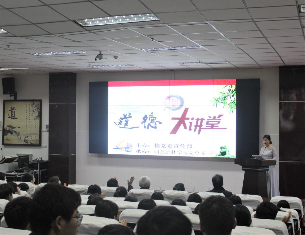 孝敬父母心存感恩,继承和弘扬中华民族优秀文化与传统美德是一个学生的道德修养和人文修养。12月18日下午4点30分,我院在4104学术报告厅举办了以“传承孝道,学会感恩”为主题的道德讲堂。本次道德讲堂由校党委宣传部主办,园艺园林学院党总支承办。出席的领导有校党委学工部部长乔建法、园艺园林学院党总支书记侯殿明、园艺园林学院副院长梁新安、园艺园林学院党总支副书记冯林剑,以及三位代表老师柴冬梅、于晓莹、窦娜老师和学生代表近两百人。