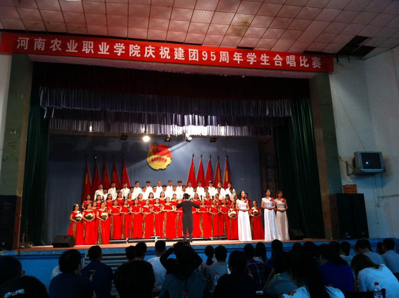 5月4日晚7时,我校庆祝建团95周年学生合唱比赛在大礼堂隆重举行,我院合唱队服装华丽、发挥出色,取得了第三名的喜人成绩。
