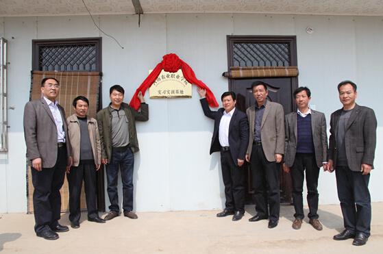 刘院长与田小锁董事长为“河南农业职业学院实习实训基地”揭牌