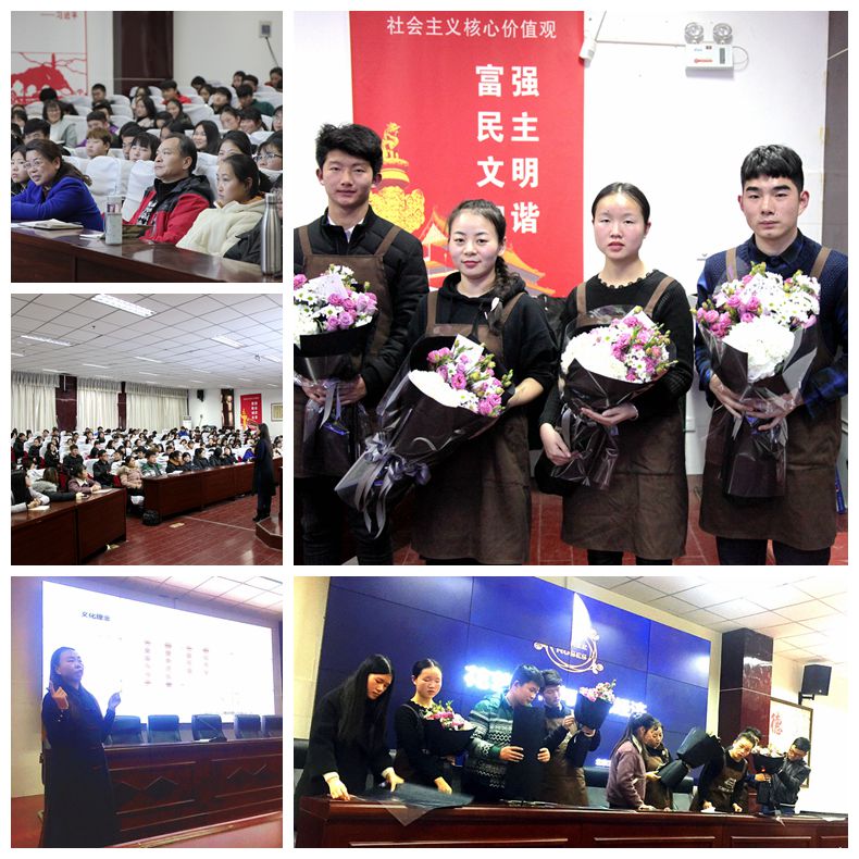北京三枝玫瑰网络科技有限公司是一家以花艺设计与制作,网络运营为主的企业。韩晓朋董事长是三枝玫瑰品牌创始人,河南鲜花艺术服务协会理事会副会长,河南省婚庆服务协会理事会副会长,多次参加花艺大赛并获得奖项。韩总凭着自己在花艺界积累的经验和丰富的阅历,给学生讲解了花艺文化,我国花卉产业发展的现状、存在的问题和前景,鲜花经济和创业精神,并同时向同学们提出几点希望:第一,希望同学们扩大知识面,提升专业技能;第二,希望同学们注意把自己的所学专业和社会需求相结合起来,进行创业能力的培养。