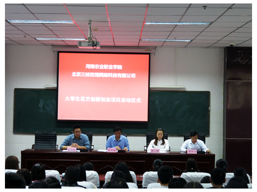 (文:陈星星/图:李庆伟)4月21日上午,河南农业职业学院园艺园林学院大学生花艺创新创业“花样年华 雏鹰展翅”项目启动仪式在4104报告厅成功举行。园艺园林学院院长常介田、副院长梁新安、副书记冯林剑、招生就业处副处长张剑锋,北京三枝玫瑰网络科技有限公司创始人韩小朋及花卉专业老师、北京三枝玫瑰网络科技有限公司相关人员出席了启动仪式。