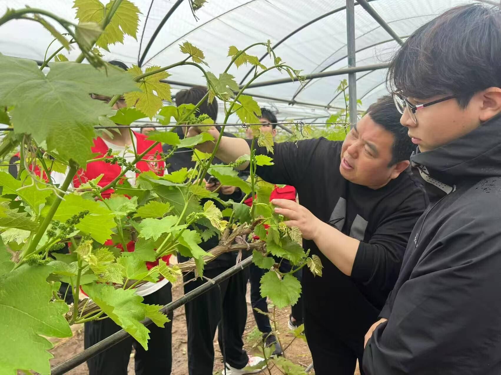进入温室大棚,针对葡萄揪卷须的操作,薛老师又深入浅出地讲解了其中原理与操作技巧。学员们全神贯注聆听,踊跃提问,现场洋溢着浓厚的学习氛围。