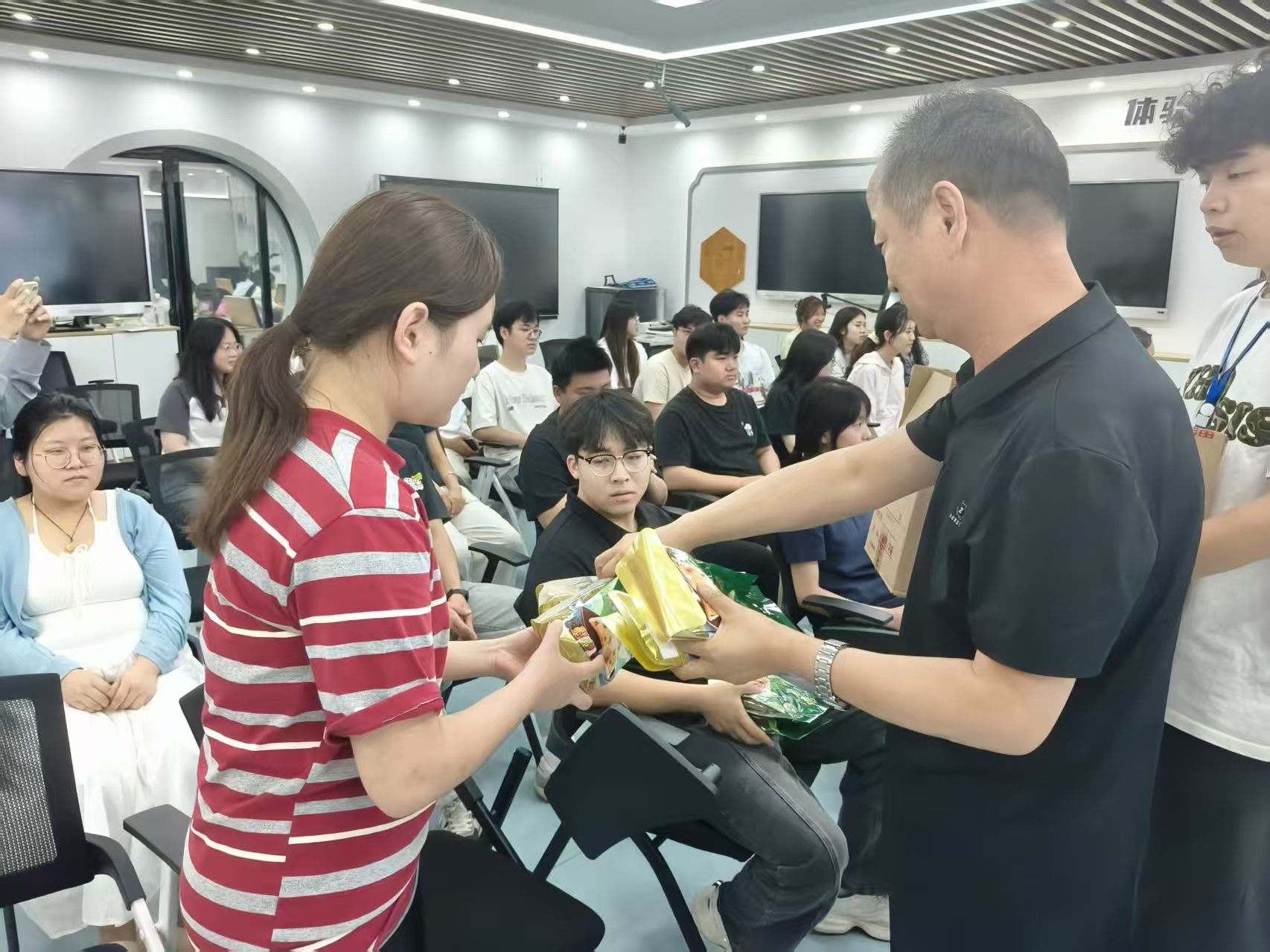 活动伊始,与会领导亲手将一盒盒粽子发到学生手中,为大家送上节日的祝福。粽子虽小,却承载着校院对同学们深深的关怀与爱护。同学们接过粽子,脸上洋溢着幸福的笑容,现场气氛温馨而热烈。