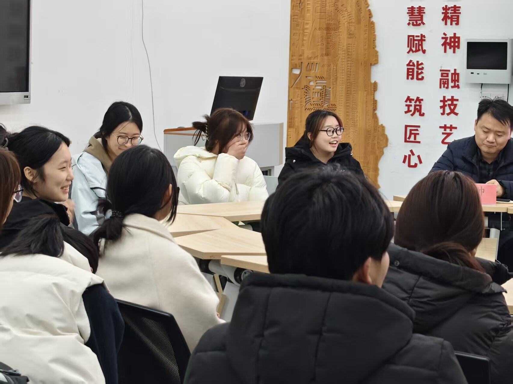 图片二:老师们与学生代表互动现场氛围轻松愉快