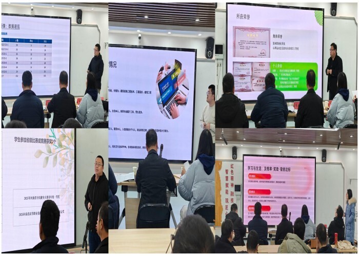 “班情分析”环节,辅导员以PPT形式汇报,围绕班级荣誉、考勤、奖助和宿舍管理等学情数据展开剖析。汇报中呈现的各类荣誉与省级竞赛成果,彰显了辅导员引领作用,核心数据解读则凸显其扎实的管理功底与育人能力。