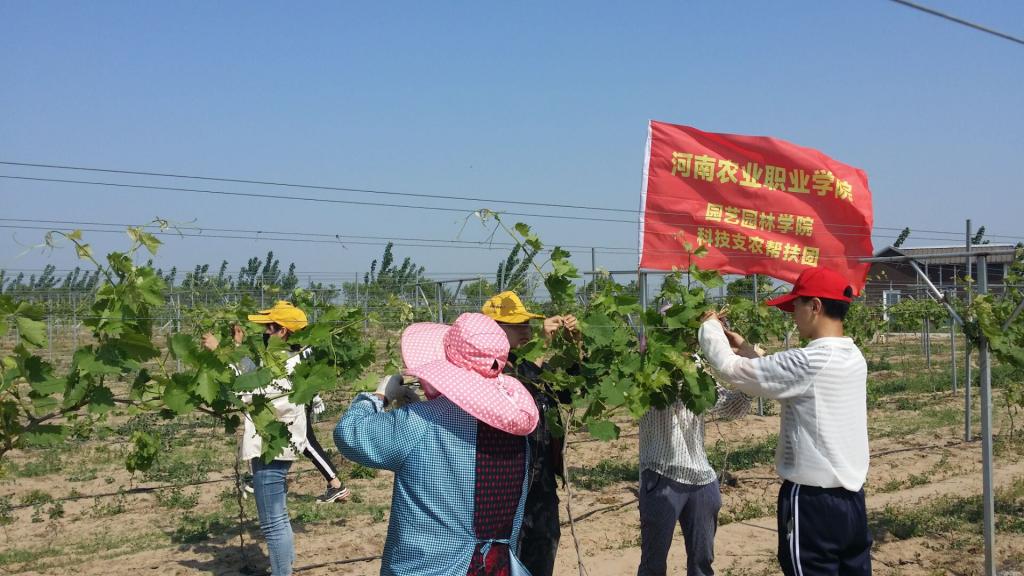 黄河富景生态世界有限公司与我校是校企合作单位,种植葡萄700余亩,当前正值葡萄管理的关键期,需要更多的技术帮扶。科技支农帮扶团30名志愿者在薛老师的技术讲解下,进行葡萄架面管理和花果管理两项技术。经过三天的活动,志愿者们已熟练掌握基本操作,并能做证质量和一定的数量,共完成150余亩的管理任务,同时又学习了其他相关技能。
