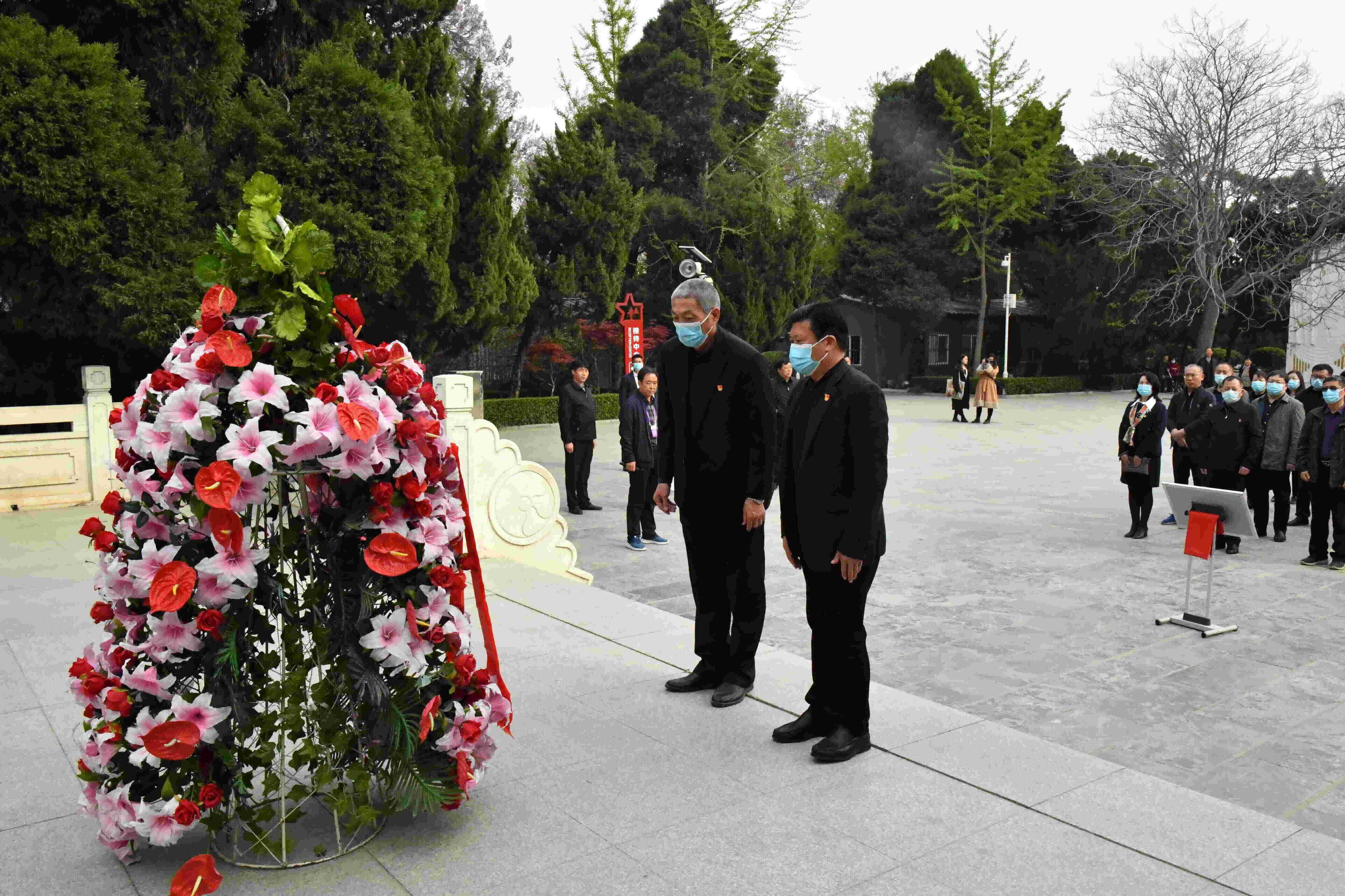 在焦裕禄纪念园,学校党委书记陈建军、校长刘源代表学校向焦裕禄烈士敬献花篮,全体人员面向焦裕禄烈士纪念碑庄重鞠躬行礼,重温入党誓词。