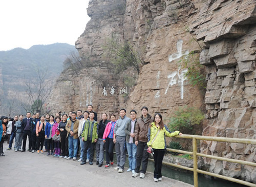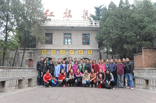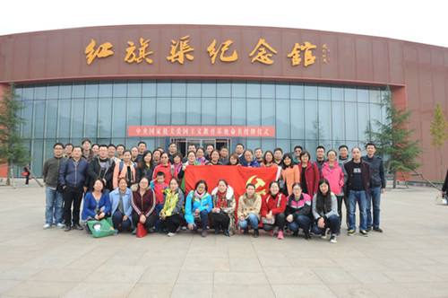 、一件件、一段段有关图片、实物和珍贵纪录片资料,深刻感受到了当年林县人民修筑红旗渠的艰辛和他们不畏艰险、顽强拼搏、撼天动地的恢弘场景,他们这种“自力更生、艰苦创业、团结协作、无私奉献”的精神让老师们感到震撼。从纪念馆出来,大家又实地考察了分水岭、青年洞等红旗渠的经典地段,并合影留念。