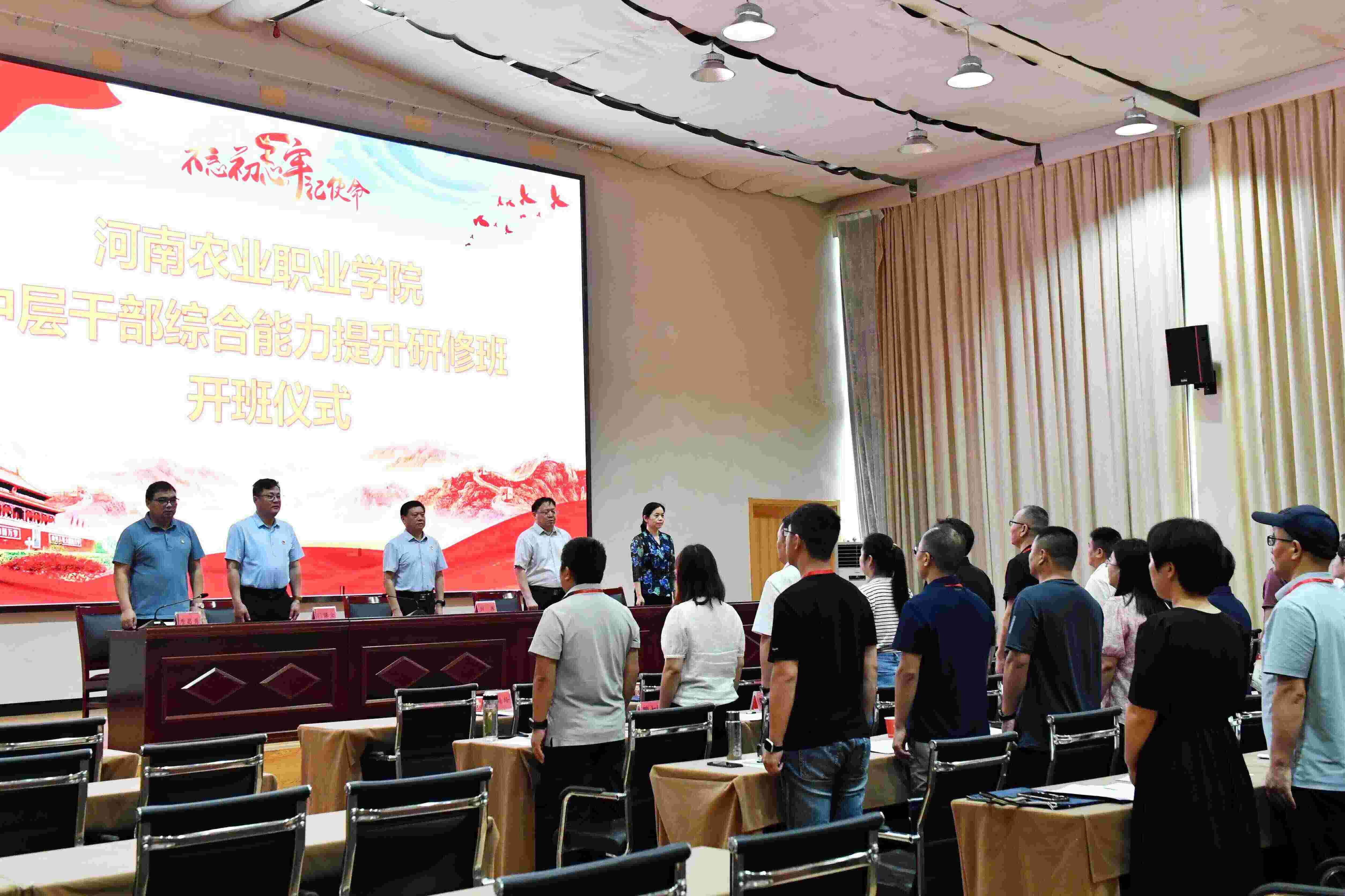 为进一步加强学院中层干部队伍建设,提升学院中层干部综合能力,7月16日至22日,7月23日至29日,河南农业职业学院在大别山干部学院固始教学基地举办了两期中层干部综合能力提升研修班。此次研修内容分为理论讲座与现场教学两部分。学院党委书记刘源,党委副书记、院长刘荣宁带队参训。在开班仪式上,大别山干部学院固始教学基地院长詹昌勇致欢迎辞,全体起立奏唱中华人民共和国国歌,随后进行了授旗仪式。