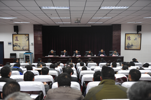 12月29日下午,在学校4104报告厅召开了河南农业职业学院领导班子调整暨学校发展建设工作部署会。省纪委驻农业厅纪检组组长、省农业厅党组成员贾秀峰,省农业厅党组成员、副厅长杨海蛟,省农业厅人事处处长薛跃、正处级调研员王红英等省农业厅领导出席会议并作重要讲话。学校党委书记姬广闻,党委副书记、校长陈建军及领导班子全体成员和中层以上干部参加了会议。会议由厅人事处薛跃同志主持。