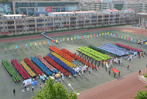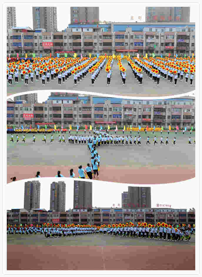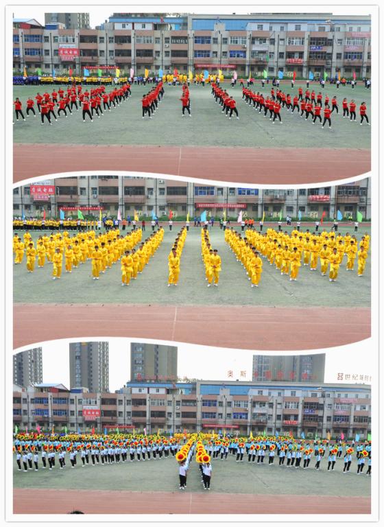 精彩的大型团体操表演《从这里开始》在师生期盼的目光里华丽登场。朝气蓬勃的学子们,踏着轻灵的步伐,挥舞着灵动的臂膀,像一朵朵绚丽的太阳花盛开在绿色的运动场。凝聚着我国传统文化精髓的《太极拳》表演,像滚滚东去的长江水,淘尽无数英雄,如丝丝洒落的春雨,润物悄无声。“快闪”表演《美丽的神话》,踩着青春的节拍,演绎着青春的舞步,燃烧了怒放的青春。