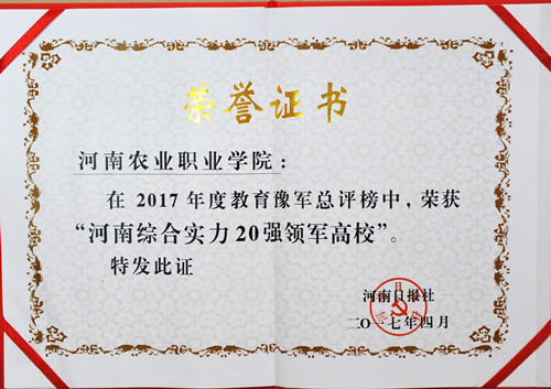 我校获评2017年度河南综合实力20强领军高校