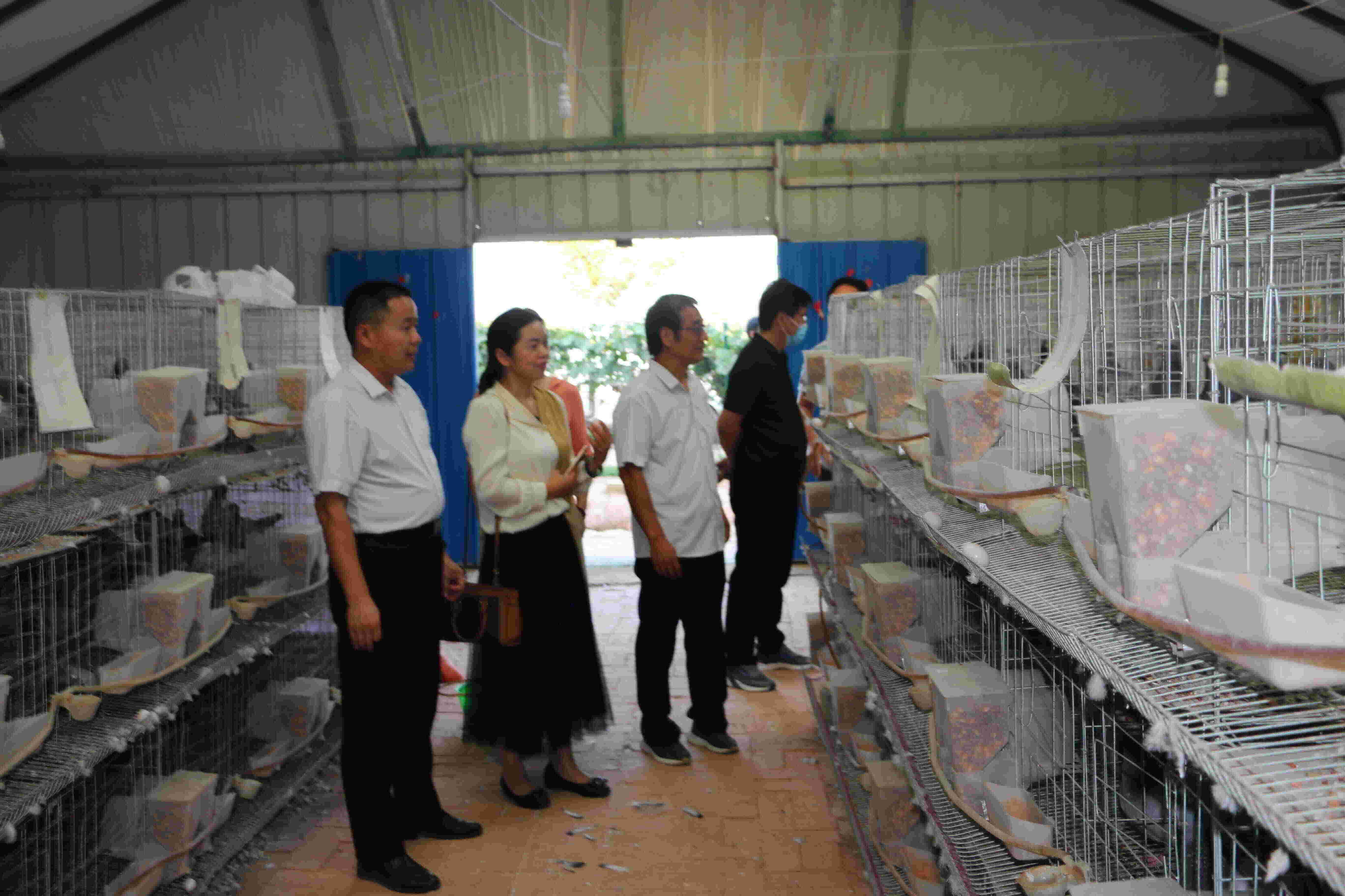 赵麦成一行到(村产业扶贫基地)云贺肉鸽养殖厂调研