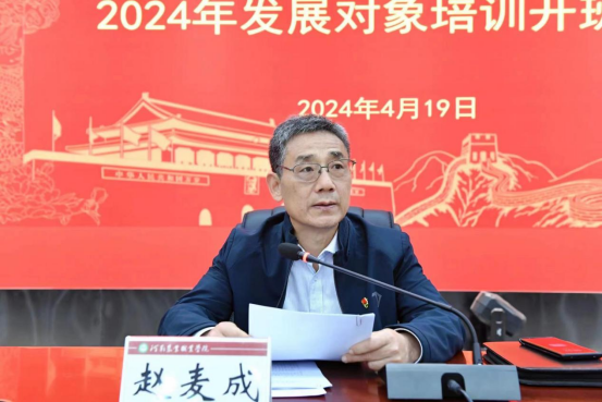 赵麦成作开班动员讲话,对全体学员提出要求。赵麦成希望广大学员树立共产党人的信仰信念,保持共产党人的昂扬朝气,弘扬共产党人的奉献精神。一要提高思想认识,深刻领会举办发展对象培训的重要意义;二要加强政治理论学习,确立正确的入党动机;三要端正学习态度,做到学有所获,学有所用,争取早日实现自己的理想,成为一名合格的中国共产党党员。