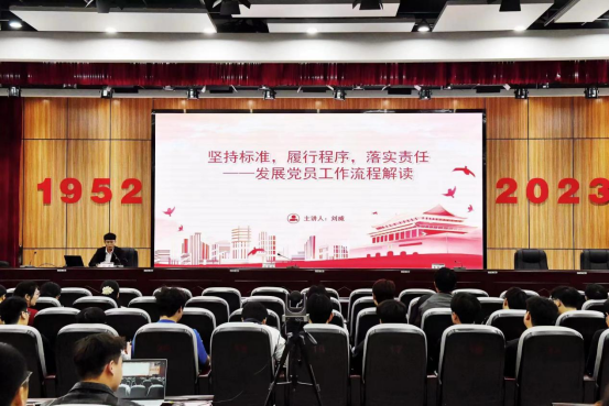 郑州科技学院组织部刘威受邀以《坚持标准,履行程序,落实责任——发展党员工作流程解读》为题作专题讲座,围绕《中国共产党发展党员工作细则》政策文件的重点与程序规定等进行了细致讲解,结合实际案例和工作经验,对发展党员工作中的重点问题和注意事项进行了深入剖析。刘威表示,党务工作人员应进一步加深对发展党员工作的认识和理解,严格按照各项程序和要求,切实做好高校发展党员工作。