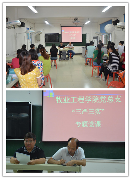 6月30日下午,牧业工程学院党总支于动物外产科实验室召开了主题为“践行‘三严三实’,增强服务师生的能力”的专题报告会。报告由牧业工程学院党总支书记李进杰同志主讲,牧业工程学院党总支副书记王申锋同志主持。教工党支部32名党员,学生党支部13名党员参加了本次学习。
