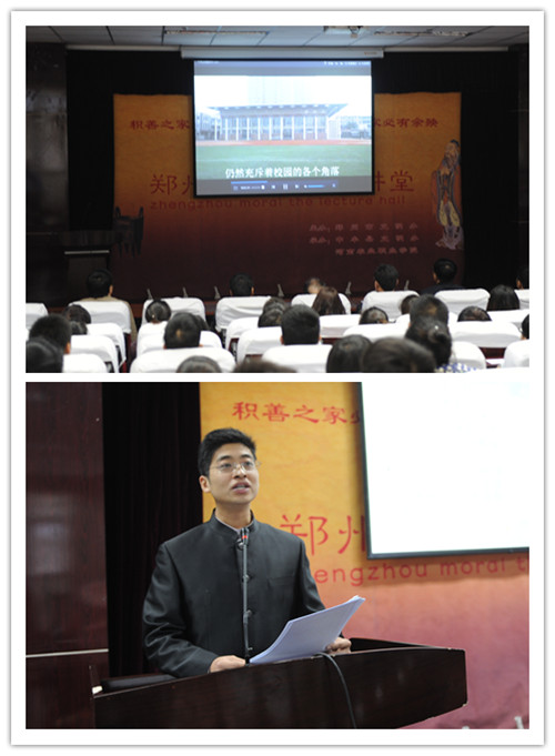 10月28日下午,由河南农业职业学院党委宣传部主办,农业工程学院承办的道德讲堂在4104报告厅举行。党委宣传部部长门保全、党委学工部部长乔建法、农业工程学院院长王立河、农业工程学院党总支书记张传伟、农业工程学院党总支副书记孙斌、党委宣传部副部长刘宪军出席报告会,农业工程学院全体师生参加了会议。