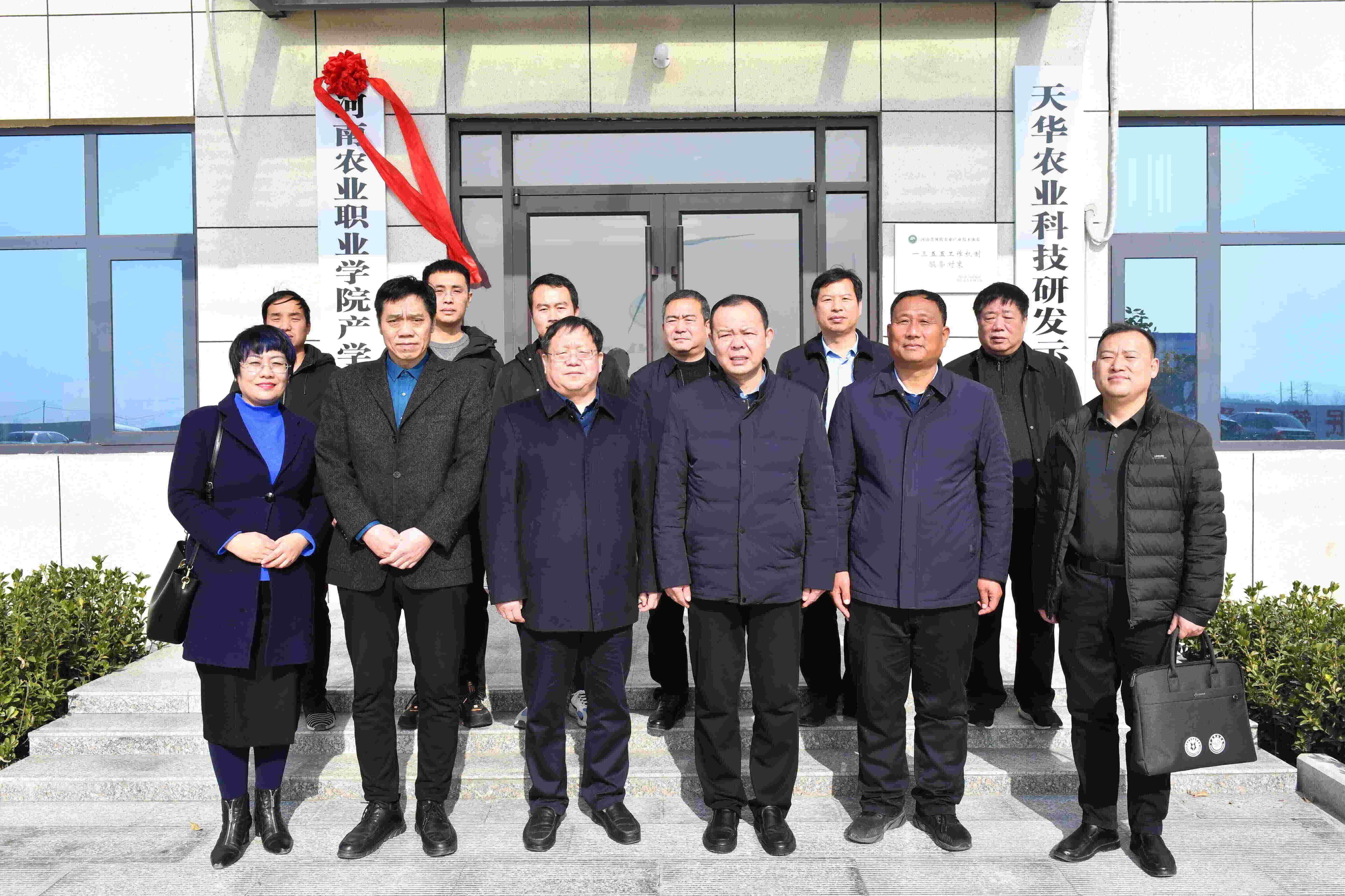 1月9日,河南农业职业学院产学研创基地签约揭牌仪式在商水县天华种植专业合作社举行。河南农业职业学院院长刘荣宁和商水县政协副主席、县工商联主席彭发光出席签约仪式并为河南农业职业学院产学研创基地揭牌。